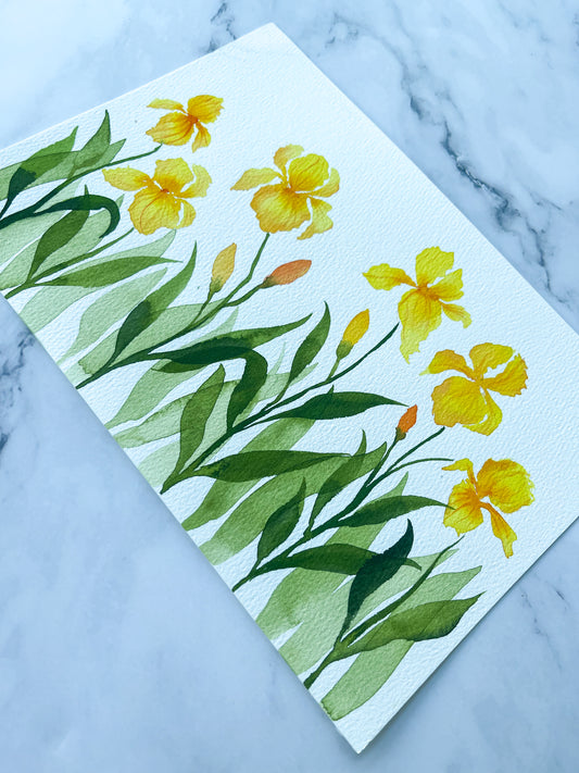 Yellow Bearded Iris Field Watercolor Fine Art Print