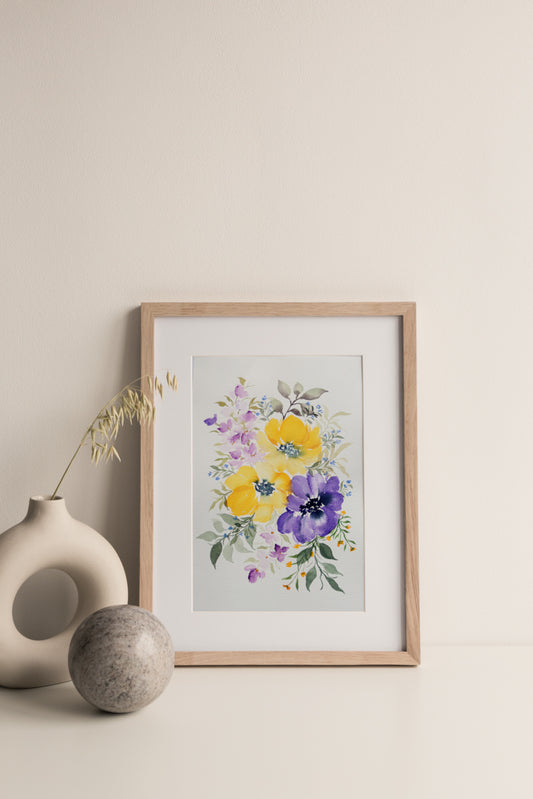 Yellow and Purple Floral Arrangement Watercolor Fine Art Print