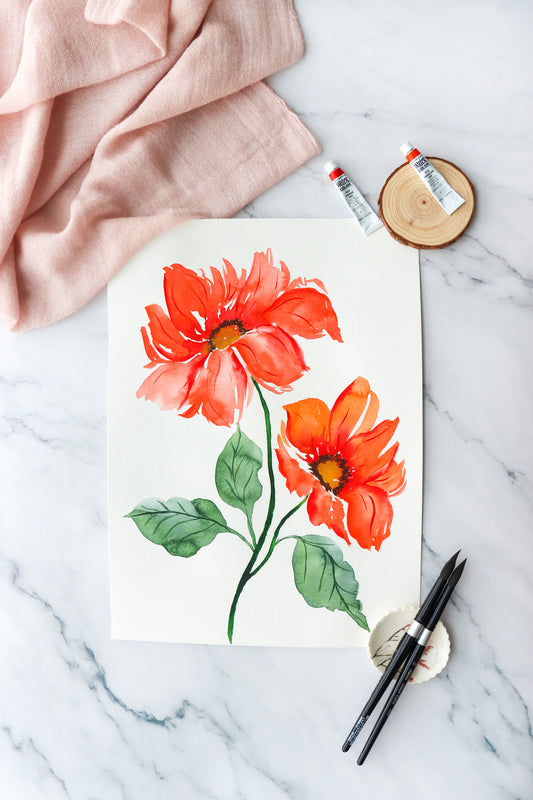Orange Blooms Expressive Watercolor Fine Art Prints