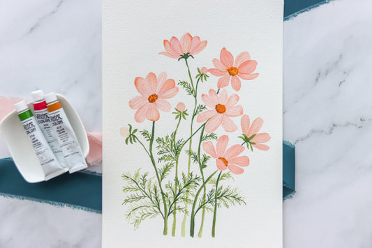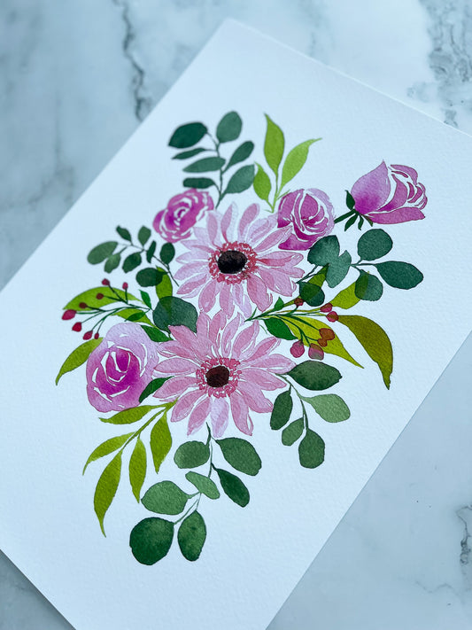 Pink Gerbera Daisies Floral Arrangement Watercolor Fine Art Print