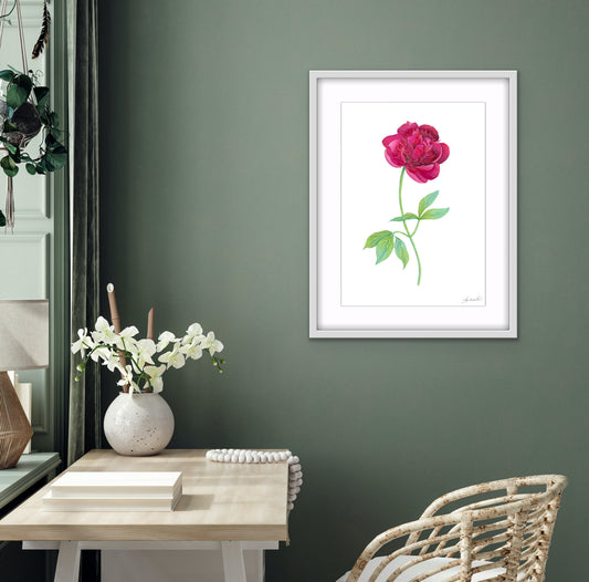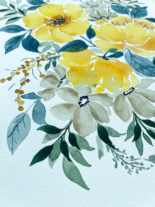 Yellow Peonies & Grey Florals Watercolor Fine Art Print