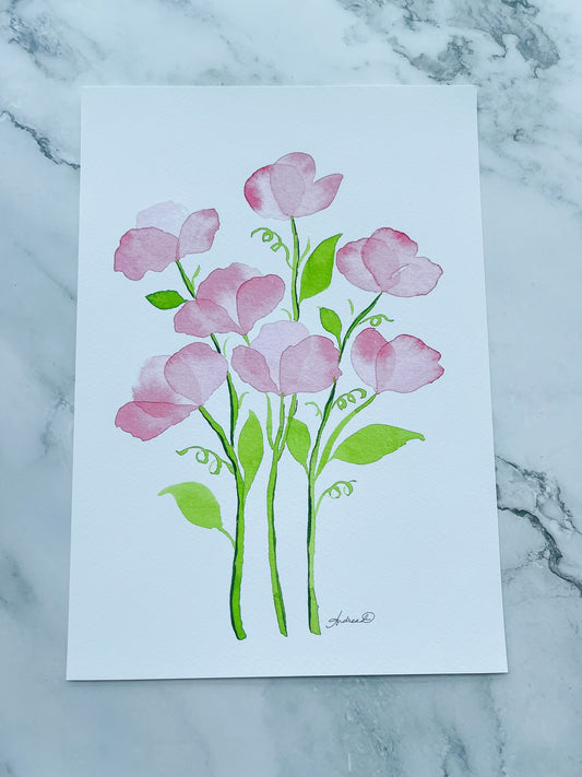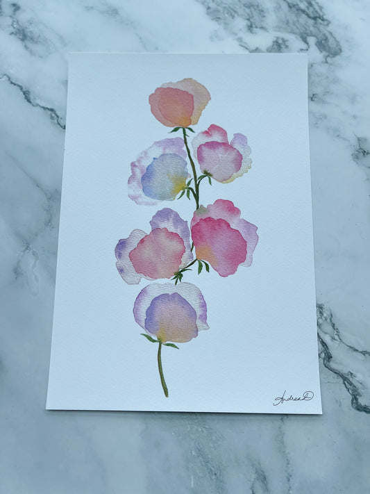 Pink - Lavender Sweet Peas Watercolor Fine Art Print