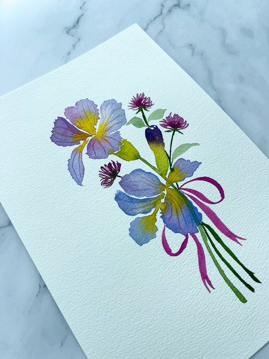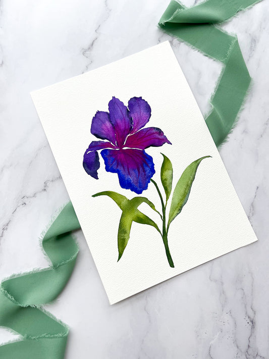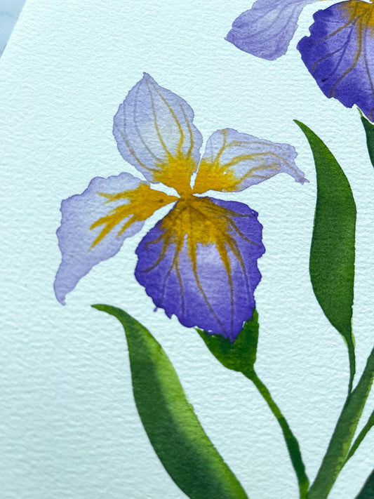 Blue Bearded Iris Watercolor Floral Fine Art Print