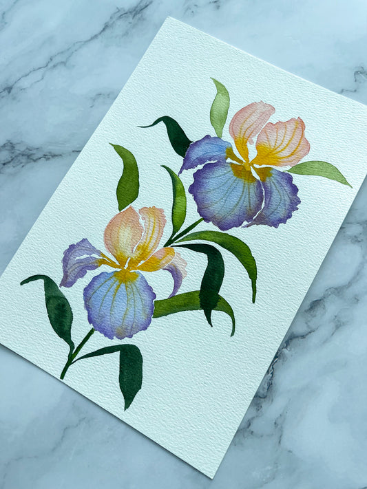 Peach Lilac Bearded Iris Watercolor Fine Art Print