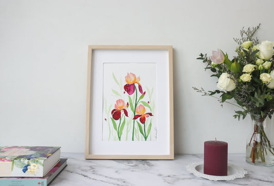 NEW! Peach & Maroon Bearded Iris Delight Fine Art Print