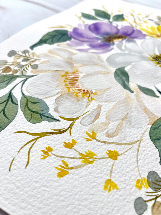 Yellow and Purple Floral Arrangement Watercolor Fine Art Print