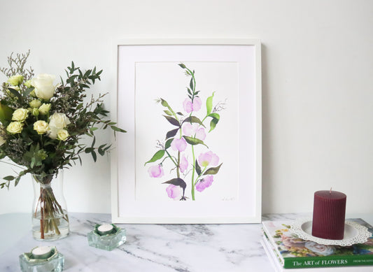 NEW! Lilac Sweet Peas Watercolor Fine Art Print
