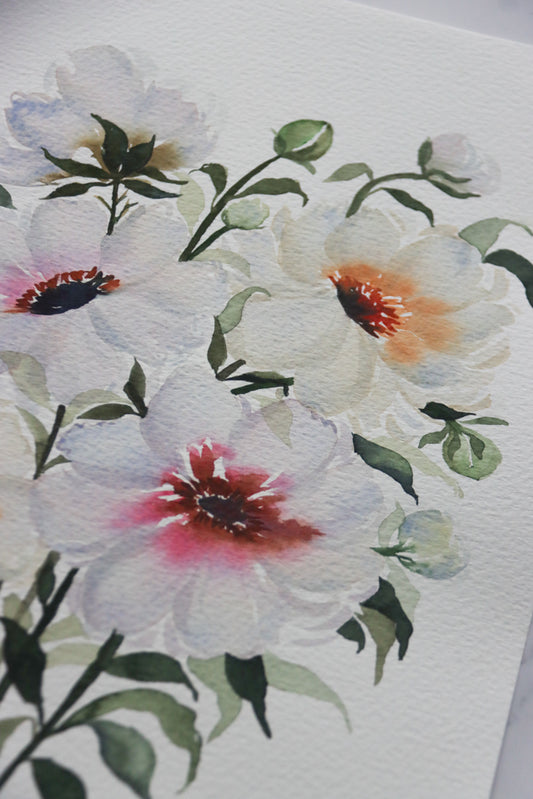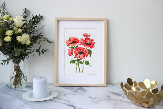 NEW! Red Anemones Bunch Watercolor Fine Art Print