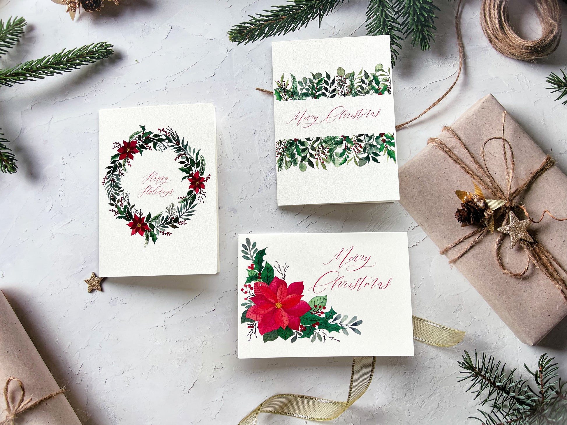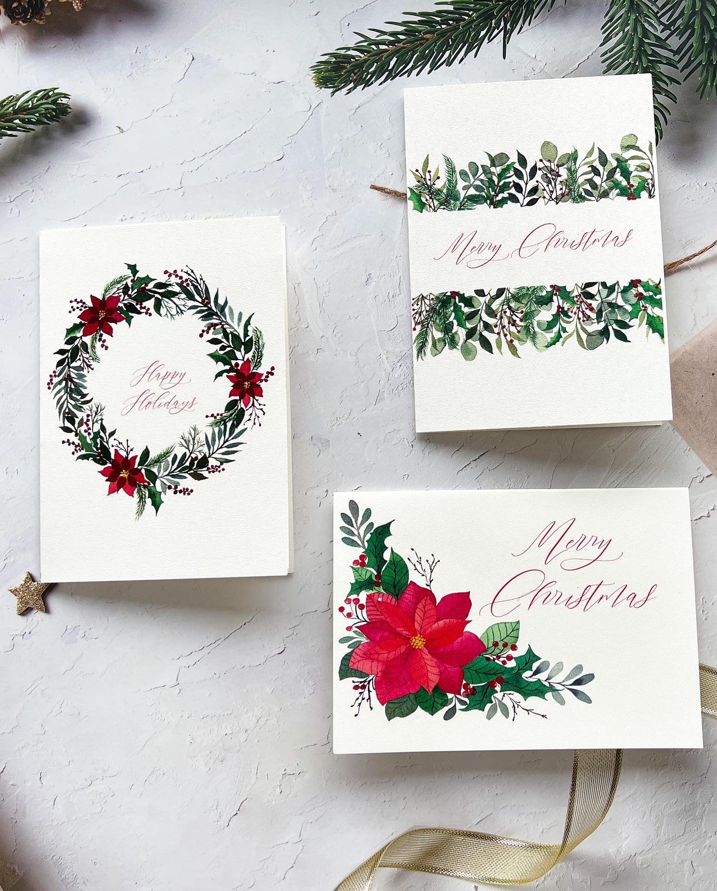 - Botanical Watercolor Art: Our Christmas Cards are adorned with watercolor paintings, adding a touch of elegance to your greetings.