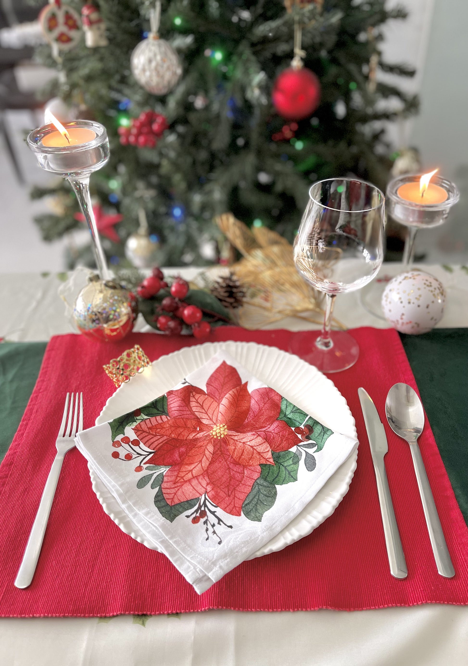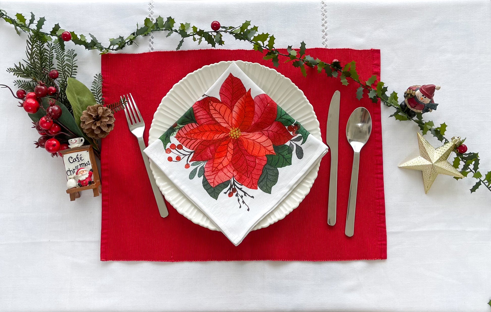 Don't miss out on the opportunity to elevate your Christmas table with these exquisite poinsettia-inspired napkins. They are not just napkins; they are pieces of art that add warmth and charm to your holiday celebrations.