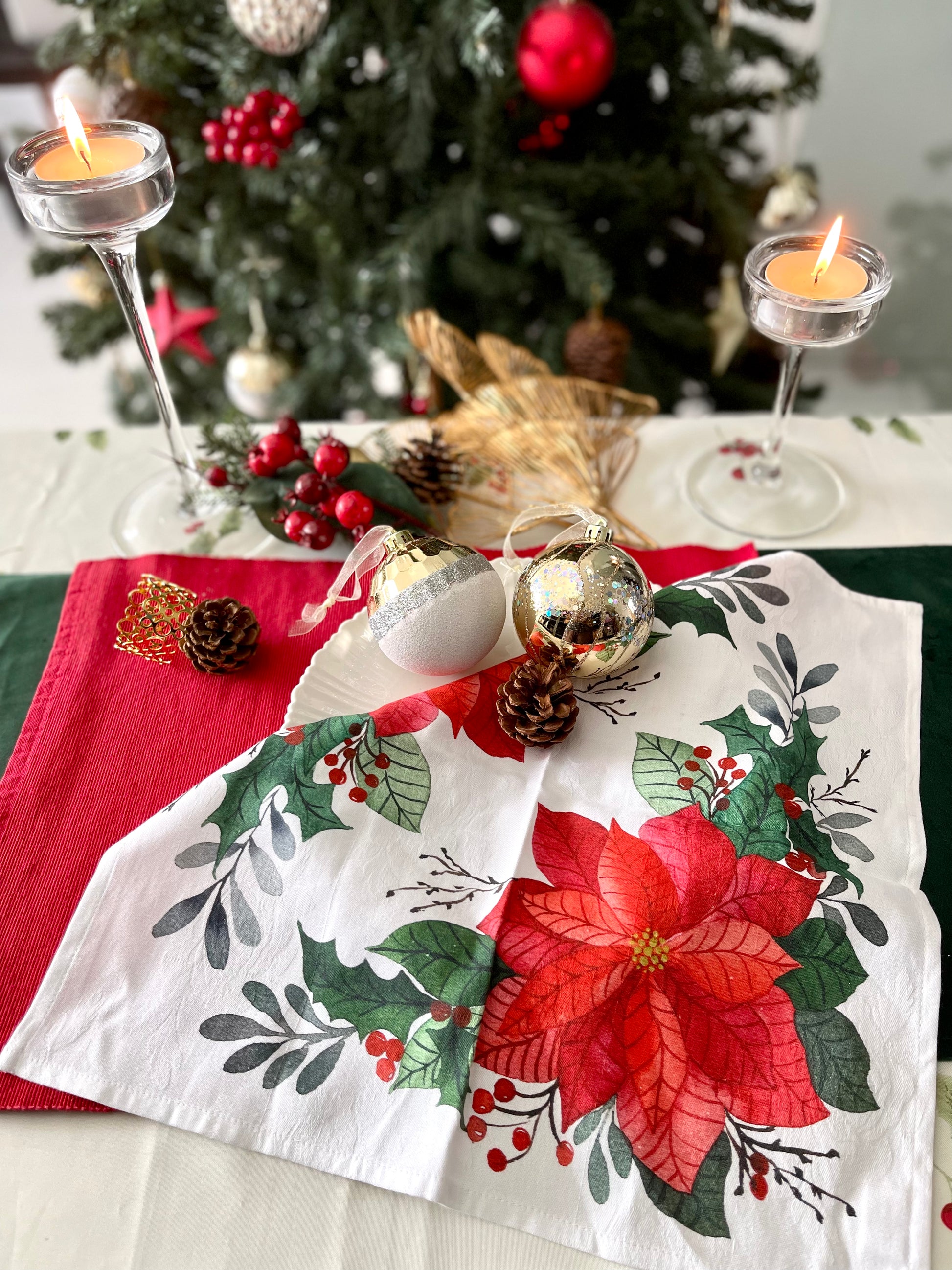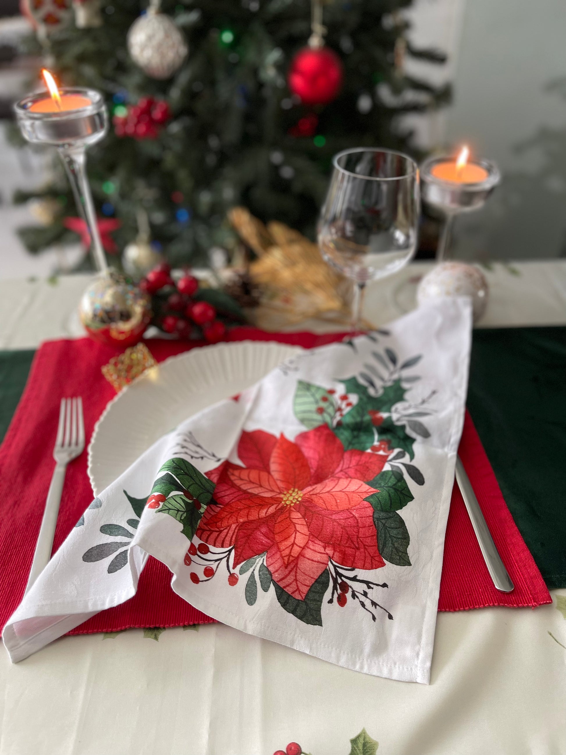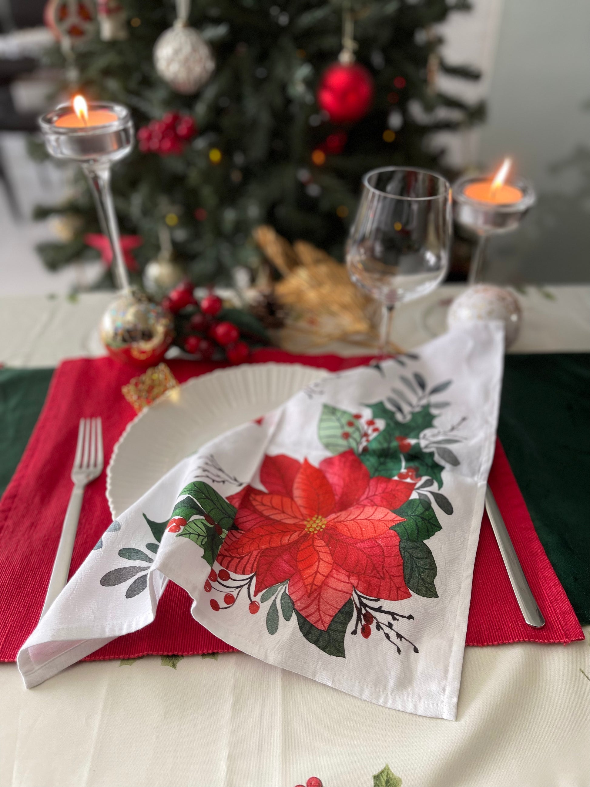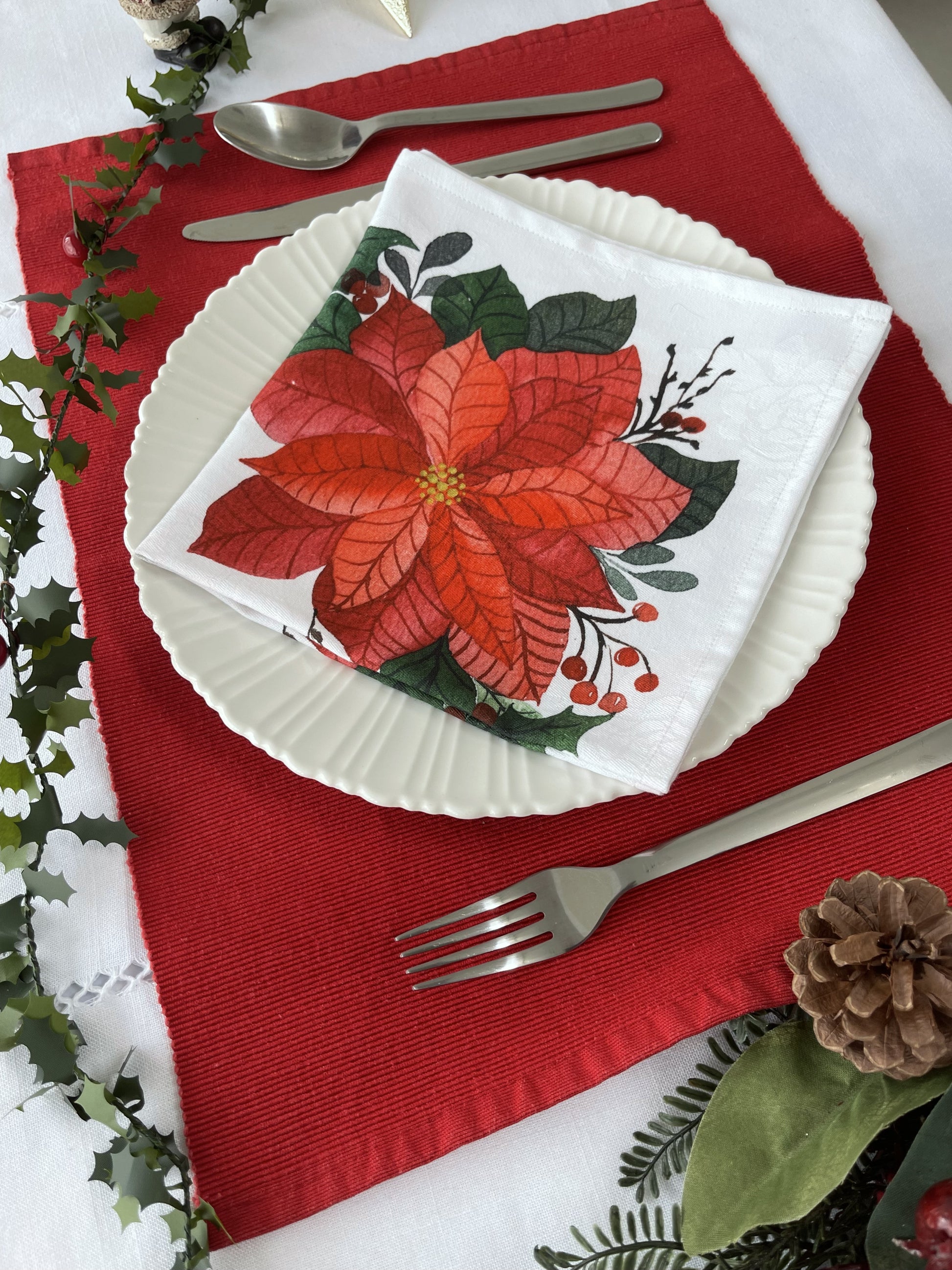 Welcome to our delightful collection of Christmas Napkins, inspired by the festive beauty of poinsettia flowers. These napkins are the perfect addition to your Christmas table setup, whether you're hosting a festive feast or looking for a unique Christmas gift for a flower lover or art enthusiast.