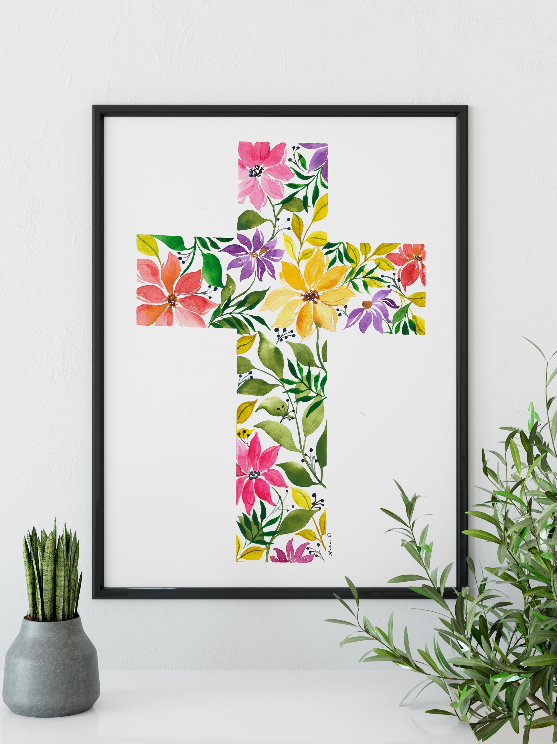Floral Cross Watercolor Fine Art Print
