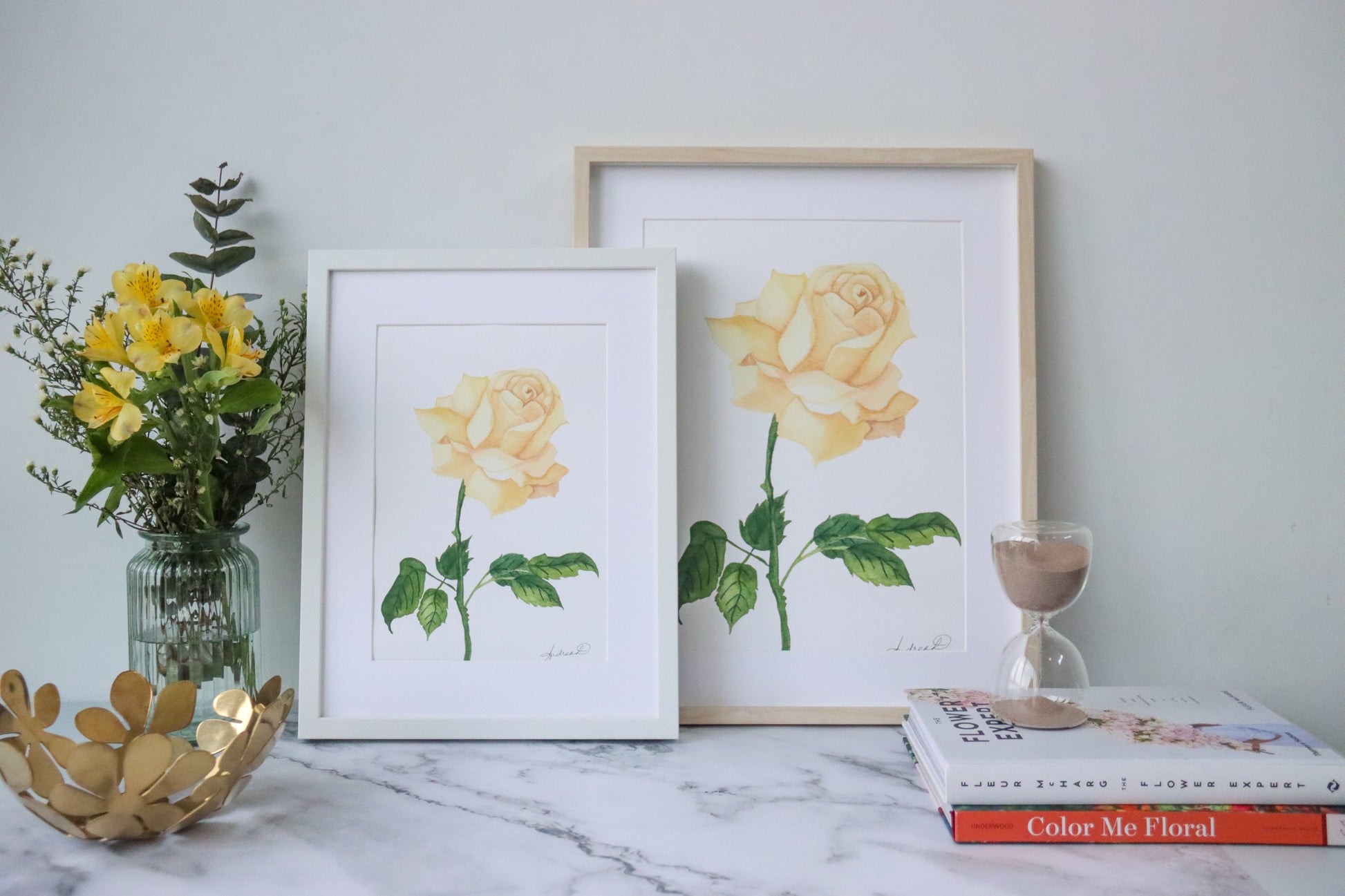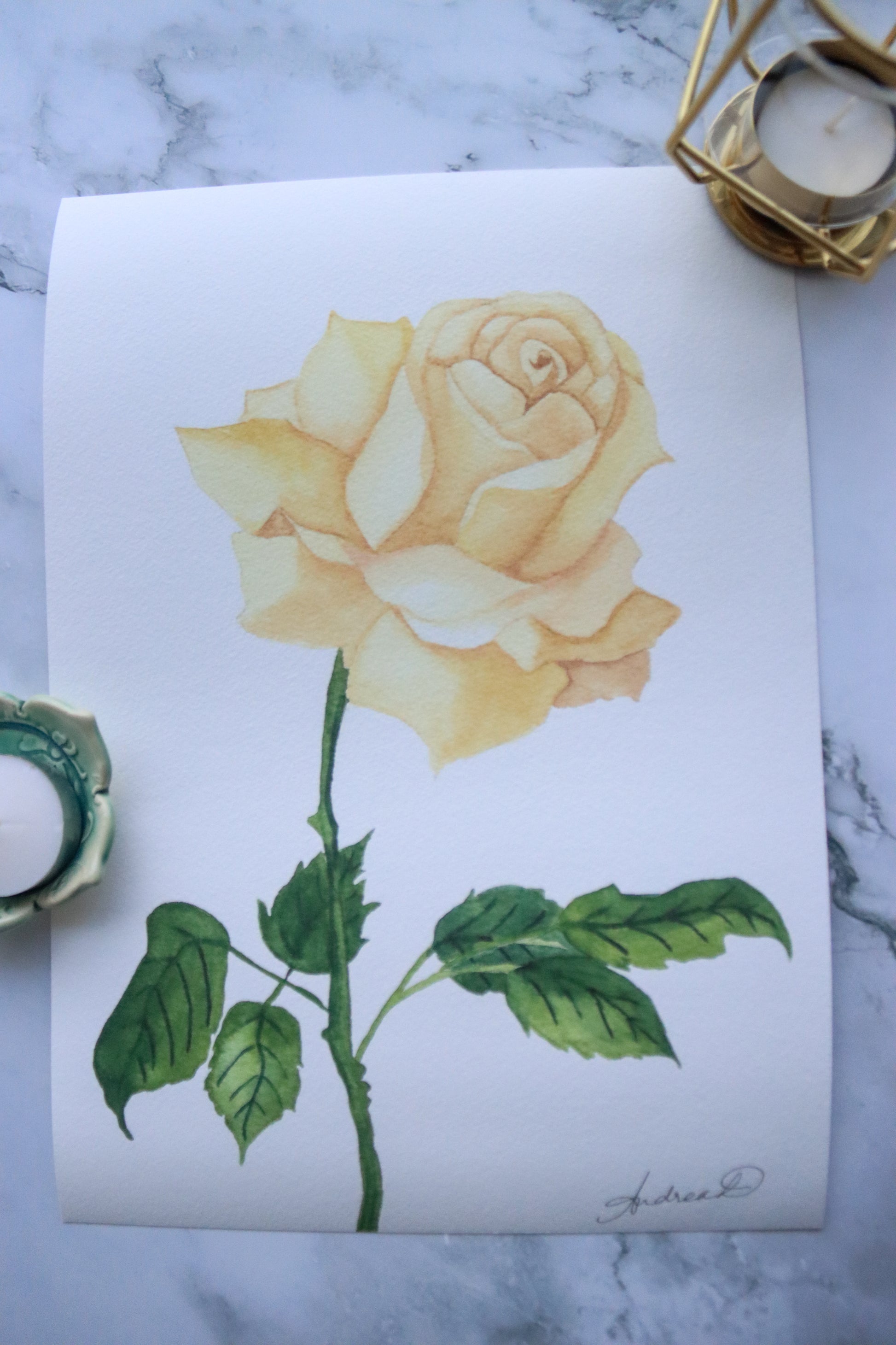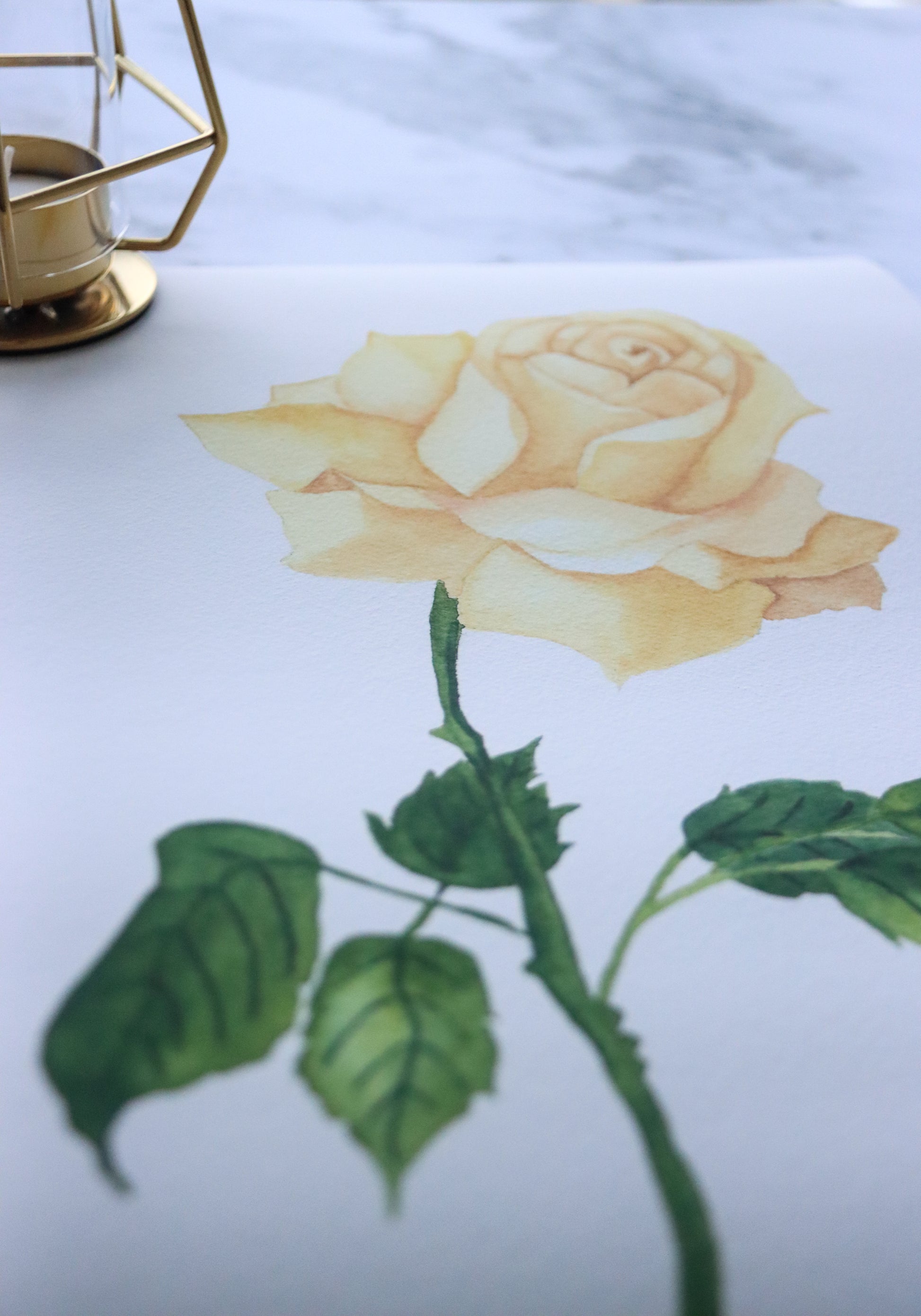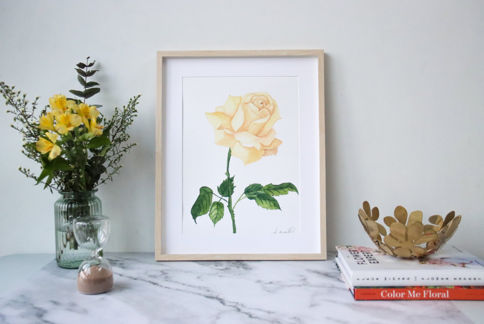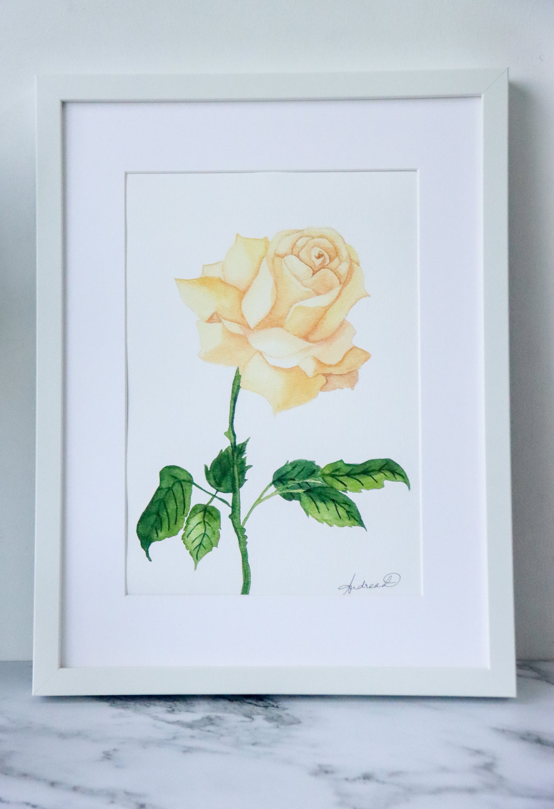 This fine art print features a delicate watercolor painting of a single stem muted cream rose with stock and leaves. Printed on museum-grade, 310 gsm fine art textured paper, this print beautifully captures every brushstroke. It's digitally signed, available in A3 and A4 sizes, and is both painted and printed in Singapore.