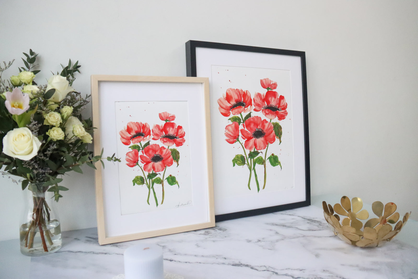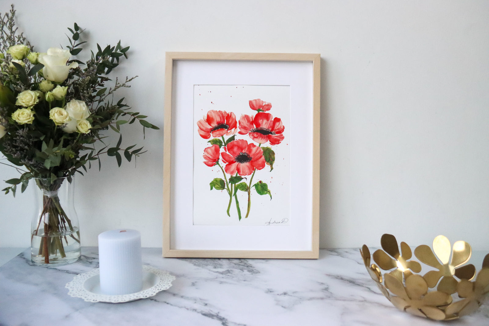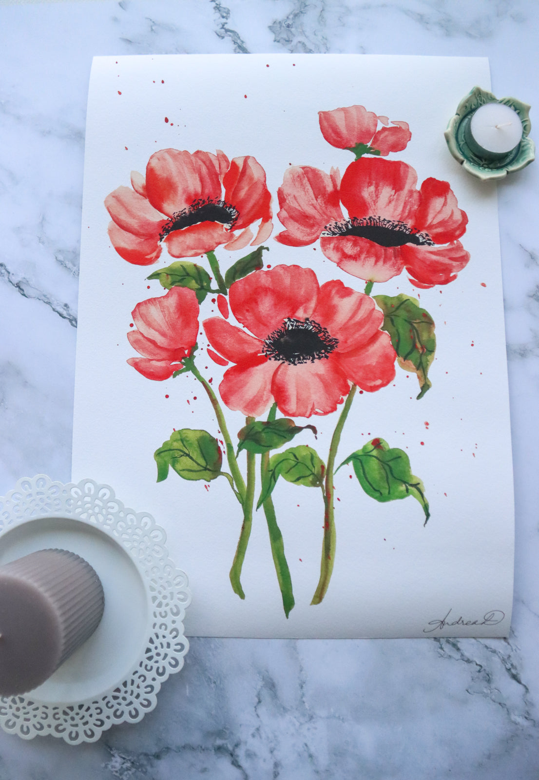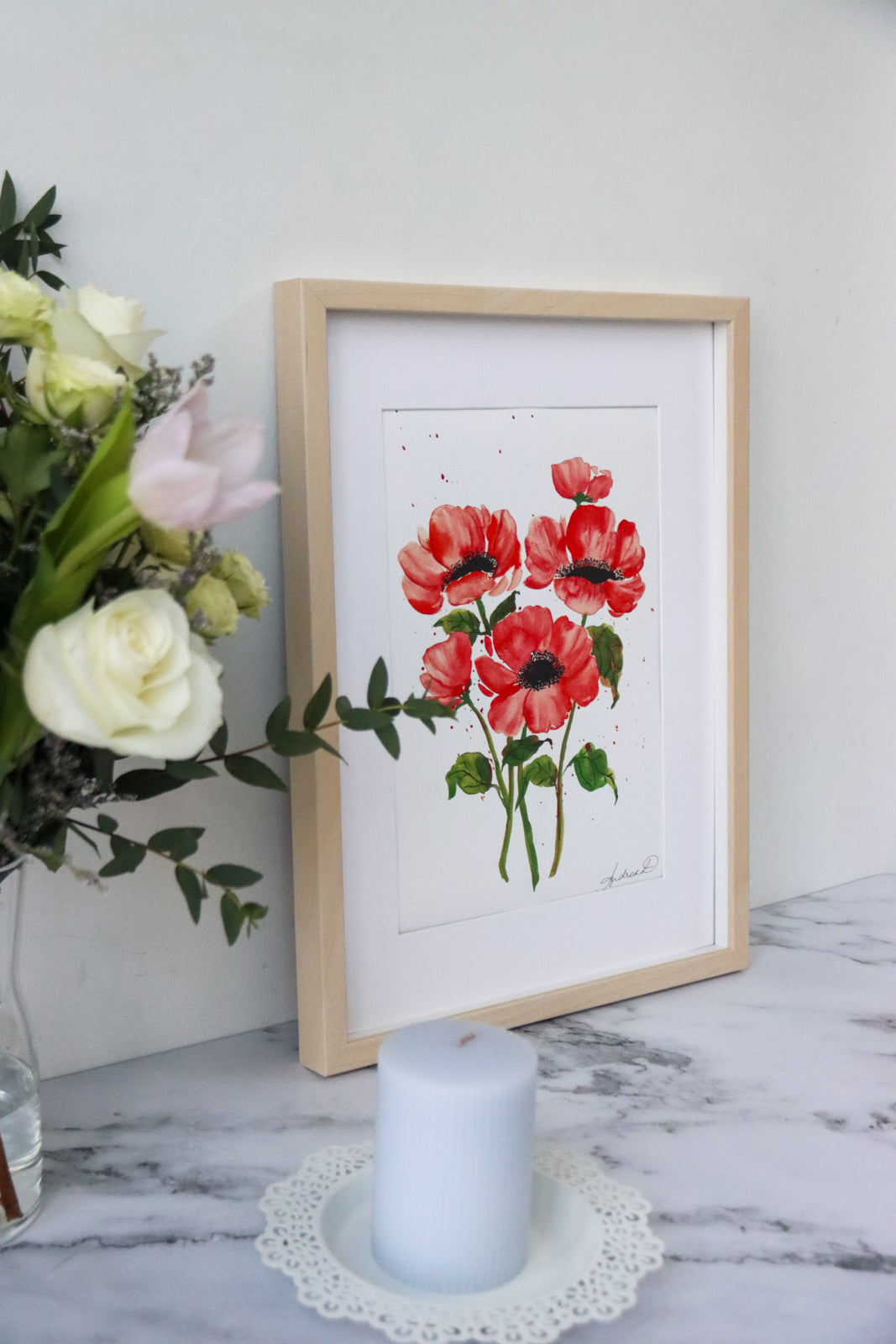 This exquisite fine art print is a beautiful celebration of nature's beauty inspired by a captivating bunch of red anemones. This masterpiece is more than just a print; it's a work of art that meticulously captures the essence of the original watercolor painting. Expertly printed on museum-grade, 310 gsm fine art textured paper, each brushstroke is rendered with utmost precision, allowing you to appreciate every detail as if you were viewing the original. Digitally signed for authenticity, this stunning print comes in two versatile sizes, A3 (29.7 x 42.0 cm) and A4 (21.0 x 29.7 cm), making it suitable for various spaces and occasions.