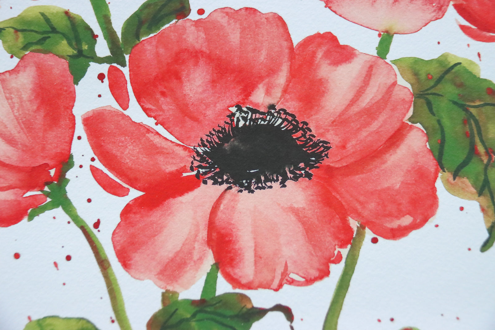 NEW! Red Anemones Bunch Watercolor Fine Art Print