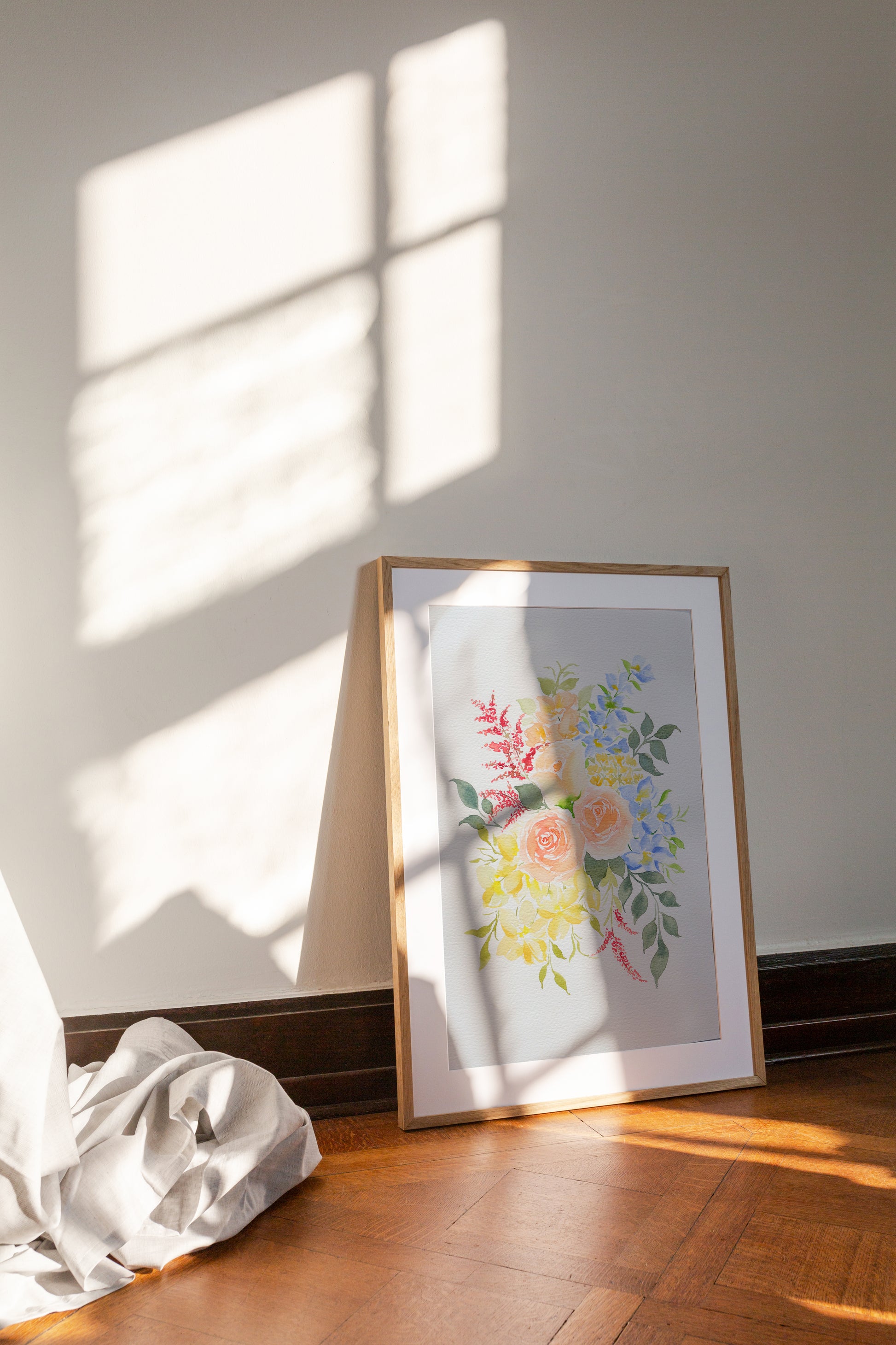 Step into a world of vibrant spring colors with this breathtaking watercolor fine art print. Capturing the lively essence of blooming flowers, this print will bring the essence of the season into any room it adorns. Available in two sizes, A3 and A4, this museum-grade quality print is created using archival inks on acid-free and textured watercolor paper, ensuring it will last for years without fading.