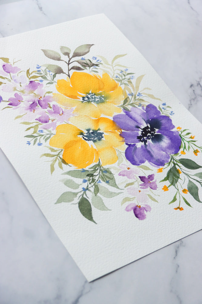 Yellow and Purple Floral Arrangement Watercolor Fine Art Print